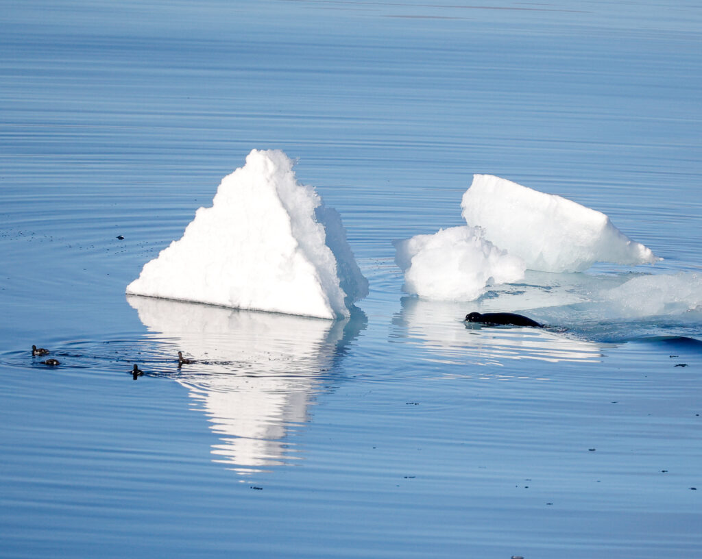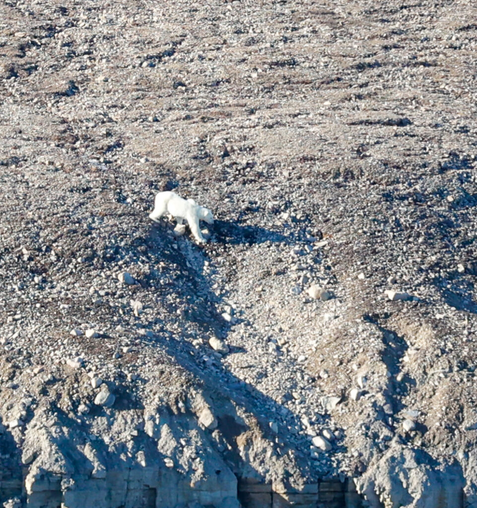 The weather was mainly sunny and the seas were calm, so we were lucky. Wildlife was sparse although there were some sightings but then most creatures had to be on their guard from those at the top of the food chain. Polar Bears rely on the sea ice to hunt seals, their favourite prey, as seals are slow moving on ice but fast swimmers. In summer, the seals spend most of their time in the water so the polar bears often go hungry and have to look for for an alternative source of food.