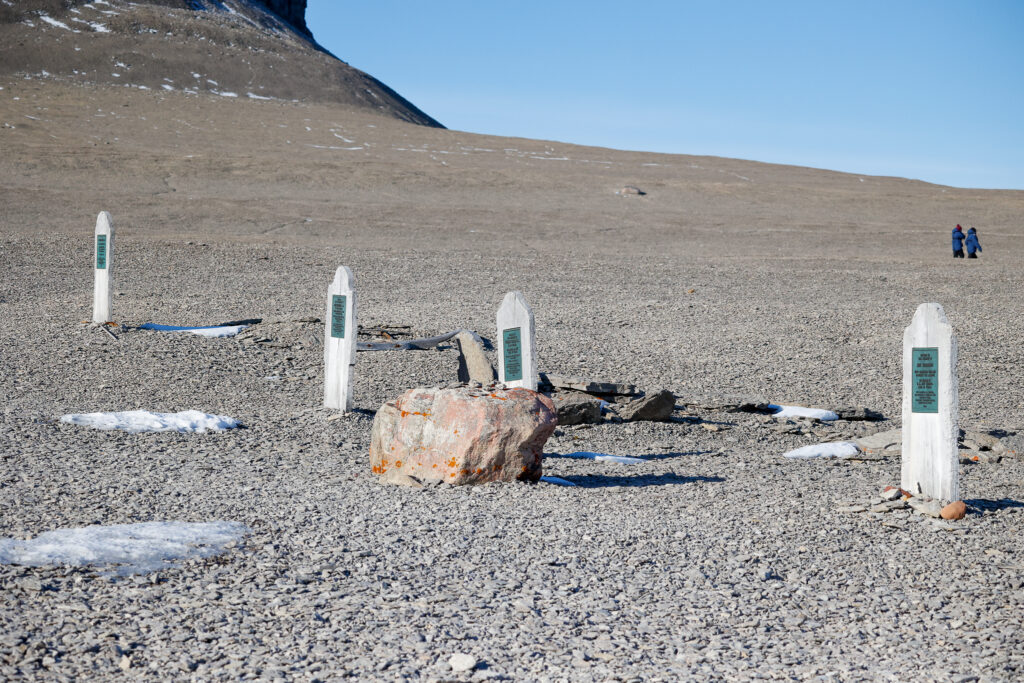 We visited Beechey Island where the ill fated expedition lead by John Franklin to find the Northwset passage, came to an end when his two ships The Terror and The Erebus, were crushed in the forming sea ice. The crew made their way ashore to the very deserted Beechey Island, however as they weren’t prepared for the harsh weather, they perished due to hyperthermia, scurvy, and starvation. On Beechey Island today are 4 grave stones, three marked with the names of 3 crew members. What happened to rest of the crew and John Franklin himself remains a mystery and investigative expeditions have failed to come up with any answers, only that there may have been cannibalism plus the same causes as the 3 men on Beechey Island.
